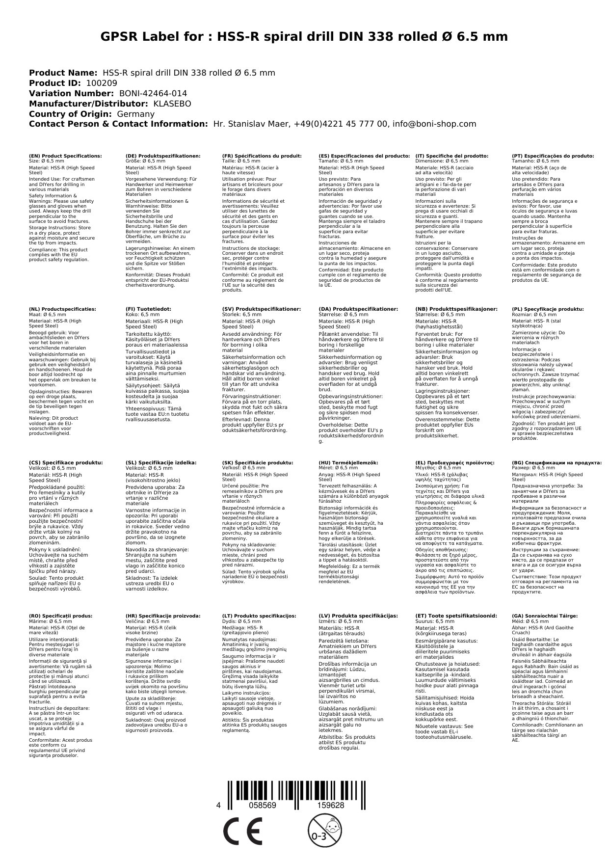 HSS-R Spiralni Sveder 6.5 mm DIN 338 z valjano izdelavo in natančnim 118 kotom