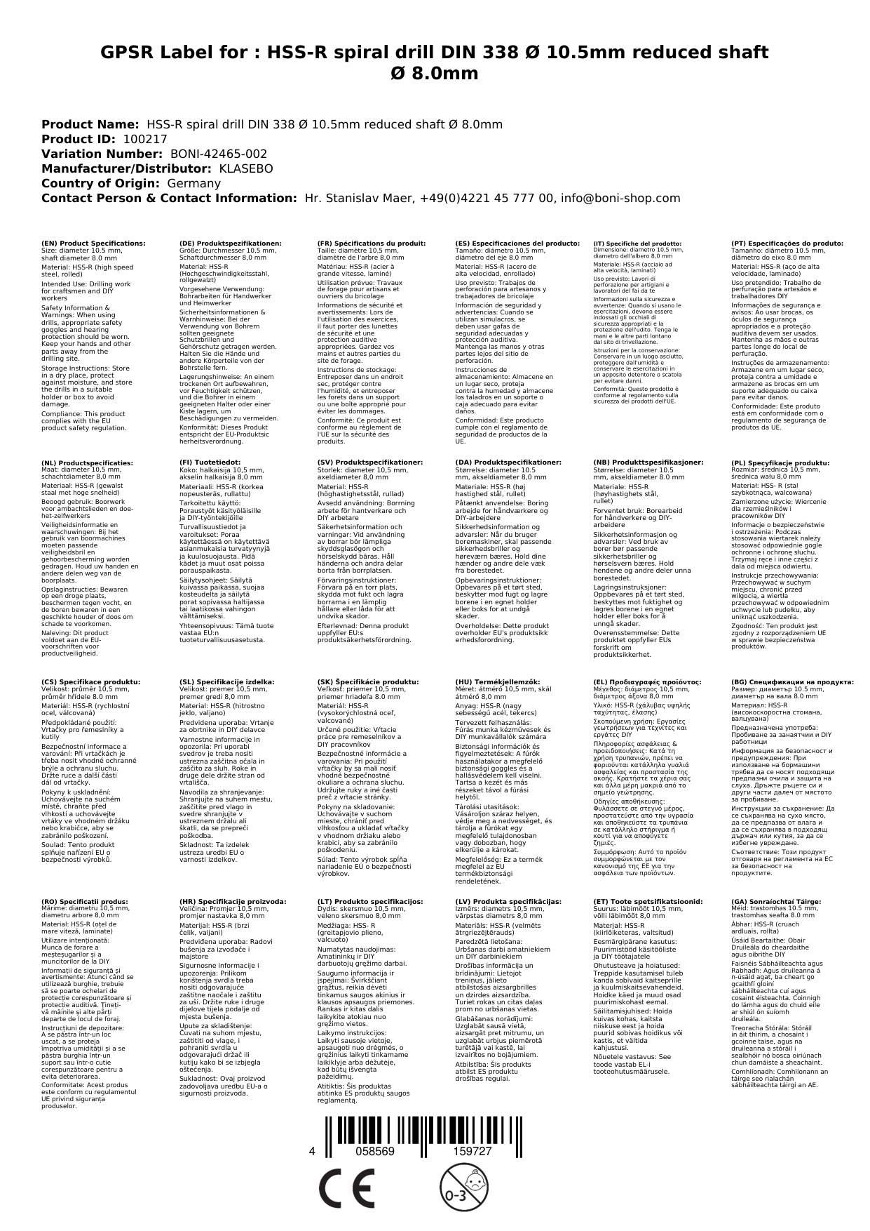 HSS-R spiralni sveder DIN 338, 10,5 mm z reduciranim steblom za natančno vrtanje