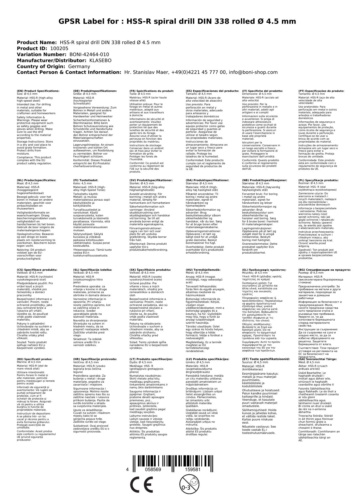 HSS-R spiralni sveder DIN 338 je nepogrešljiv pripomoček pri obdelavi kovin. Izdelan iz visokokakovostnega hitroreznega jekla, ta sveder z valjano obliko in premerom 4,5 mm zagotavlja visoko natančnost in odlično odpornost proti obrabi. Primeren je za kovine do 900 N/mm², kar pomeni, da zadosti tako profesionalni kot domači uporabi.