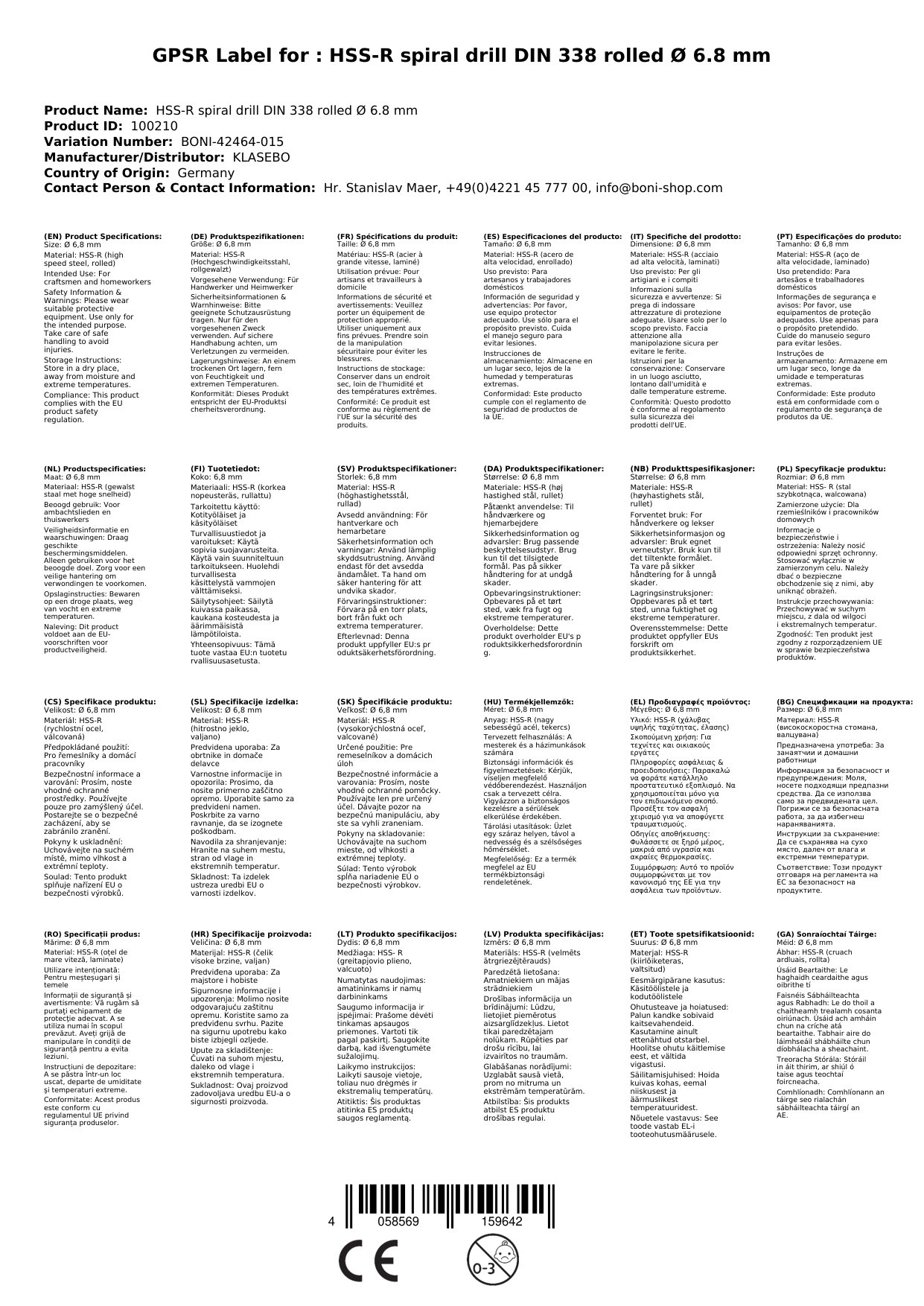 Glavne značilnosti vključujejo premer 6,8 mm in valjano izvedbo, ki zmanjšuje možnost zloma in omogoča optimizirano odvajanje ostružkov. Sveder je primeren za različne materiale, kot so legirana in nelegirana jekla, lito železo, sinter metali, neželezne kovine ter tudi plastika. Zaradi svoje natančnosti in stabilnosti pri vrtanju, omogoča ustvarjanje čistih in natančnih luknjic brez zatikanja.