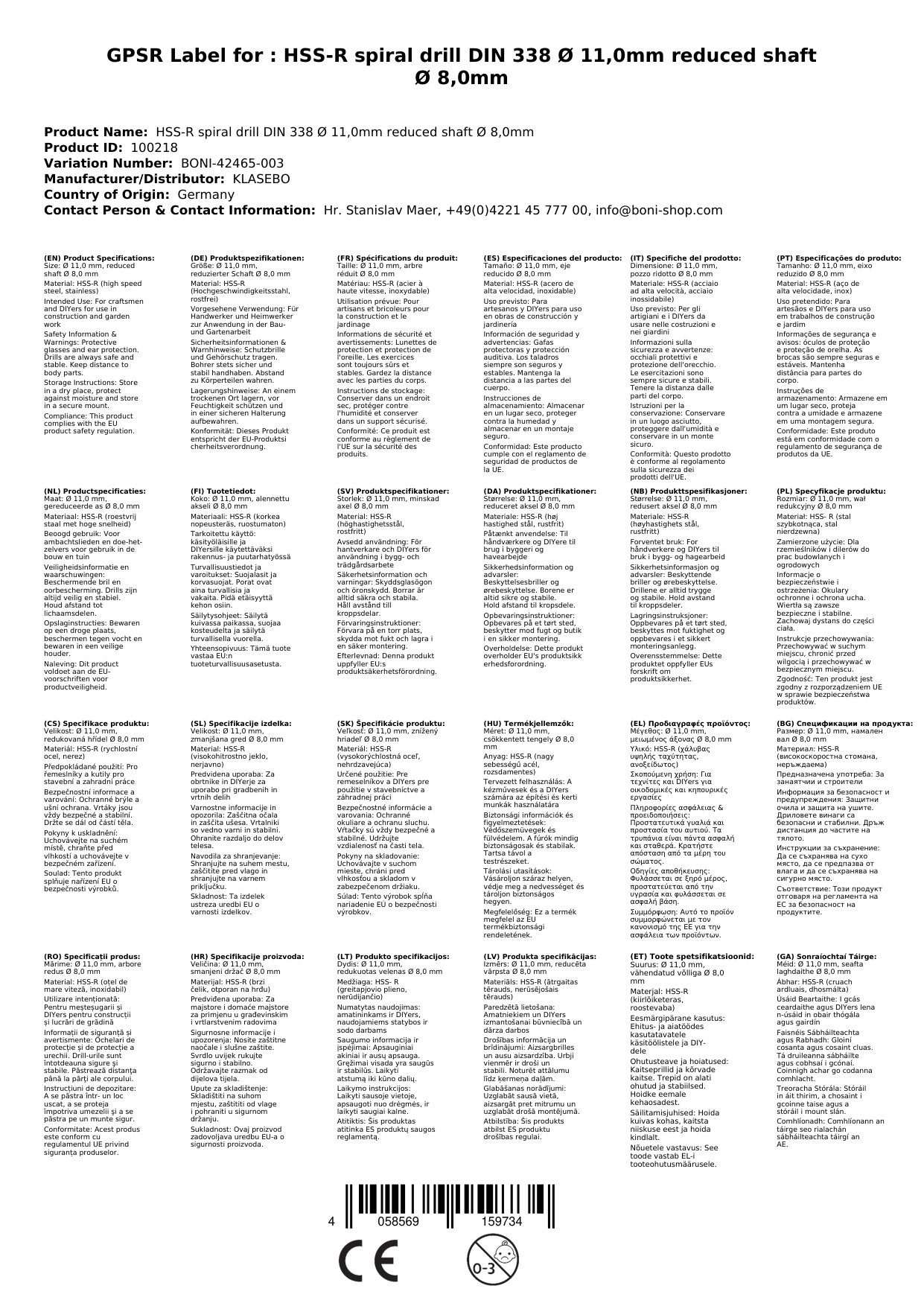 HSS Sveder 11mm DIN 338 za Kovino s Spiralnim dizajnom in reduciranim steblom