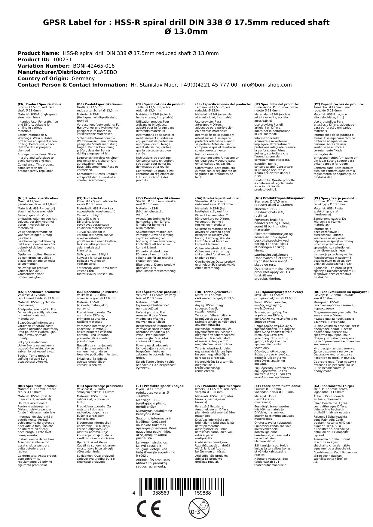 HSS sveder 17.5mm z reduciranim steblom DIN 338 za natančno in zanesljivo vrtanje