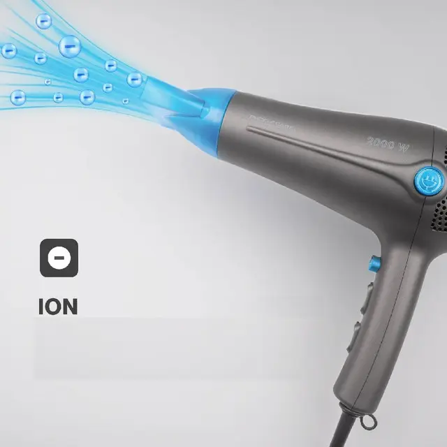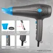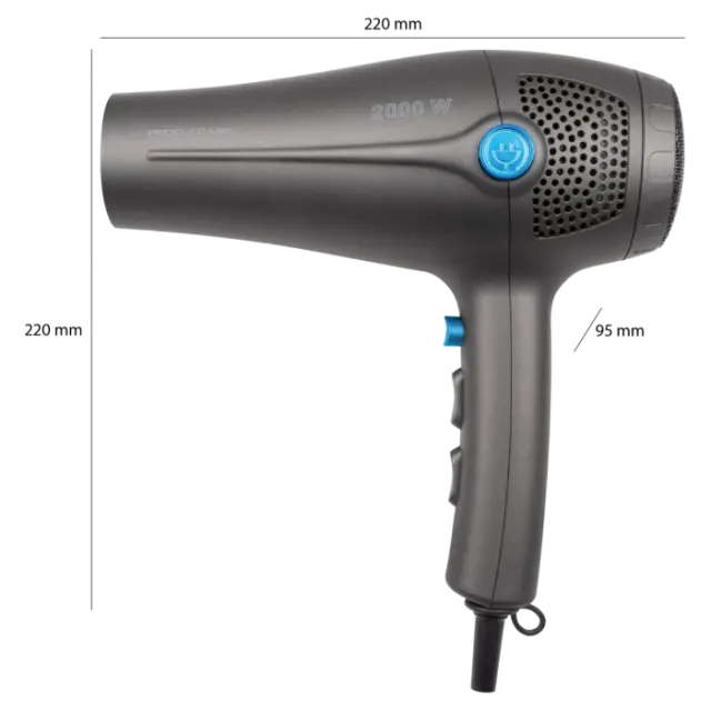 Profesionalni sušilnik za lase z močjo do 2 000 W je primeren za nežno sušenje las. Opremljen je s funkcijo ionizacije za ustvarjanje antistatičnega učinka, ki las ne izsuši, temveč jih naredi gladke in sijoče. Sušilnik za lase je opremljen s 3-stopenjskim stikalom za temperaturo in 2-stopenjskim stikalom za hitrost. Seveda je na voljo tudi možnost hladnega zraka za dokončanje pričeske in oblikovanje pričeske. Priložena je vrtljiva šoba. Prednost je samodejno navijanje kabla s pritiskom na gumb. Napajalni kabel je dolg 180 cm, kar omogoča udobnejšo uporabo tudi na večji razdalji od vtičnice. Vdihani zrak gre skozi odstranljiv filter, ki zadržuje neželeno umazanijo in prah. Sušilnik za lase je opremljen z zaščito pred pregrevanjem in očesom za obešanje na ročaju za priročno shranjevanje. Napajanje je 220-240 V, 50/60 Hz.