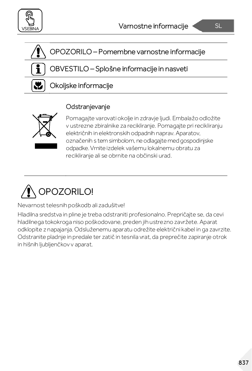 Slike o varnosti izdelka vsebujejo opozorila na embalaži izdelka in lahko vključujejo ključne varnostne informacije, povezane z določenim izdelkom.