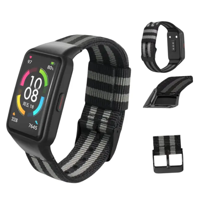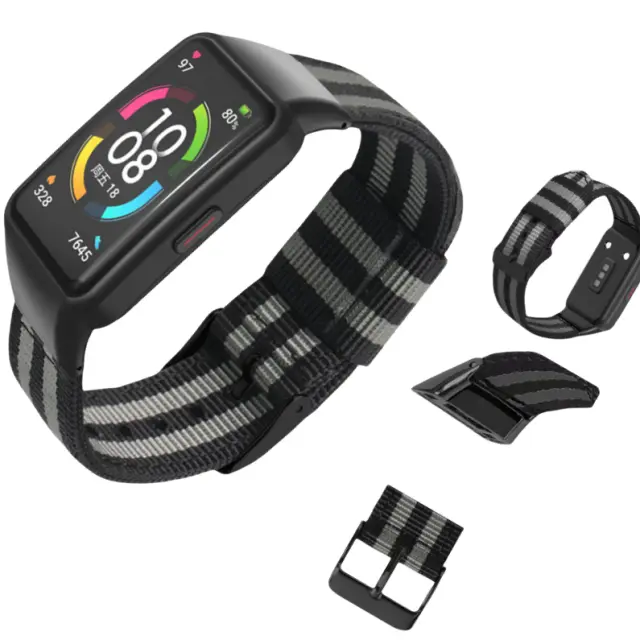 Zračen in udoben: ta pas za uro, izdelan iz vrhunskega najlonskega platna, zagotavlja izjemno zračnost, kar zagotavlja udobno izkušnjo nošenja tudi med intenzivnimi vadbami ali vročim vremenom.