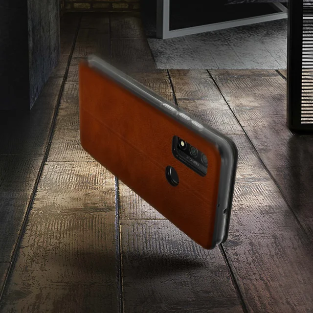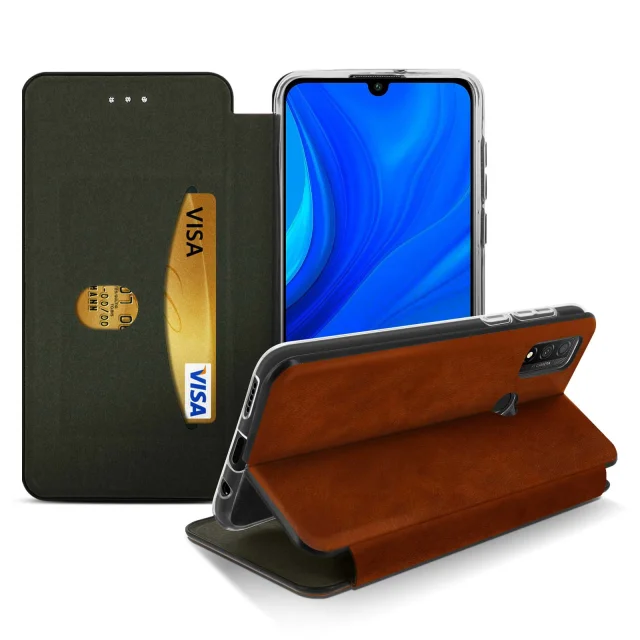Huawei P smart 2020 Leatherette Cover držalo za kartice in video držalo, zbirka Haja - rjava