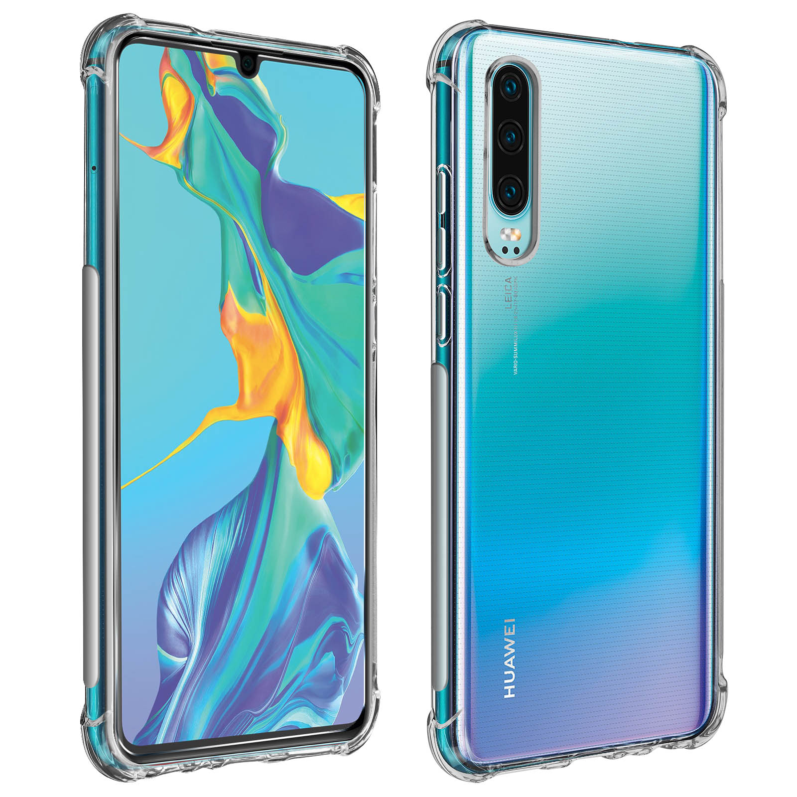 Premium zaščitni paket, sestavljen iz ovitka in folije, za Huawei P30. Fleksibilna prevleka iz silikona, izjemno odporna na vsakodnevne praske. Folija iz kaljenega stekla za zaščito sprednje strani pametnega telefona. 360 ° zaščita: koti pokrova so ojačani za boljšo absorbcijo udarnih valov.