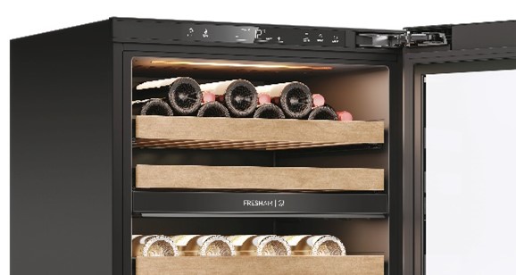 Vinska vitrina deluje z visokokakovostnim kompresorjem, ki ustvarja nizek nivo vibracij in manj hrupa, kar zagotavlja popolne pogoje za shranjevanje vina.