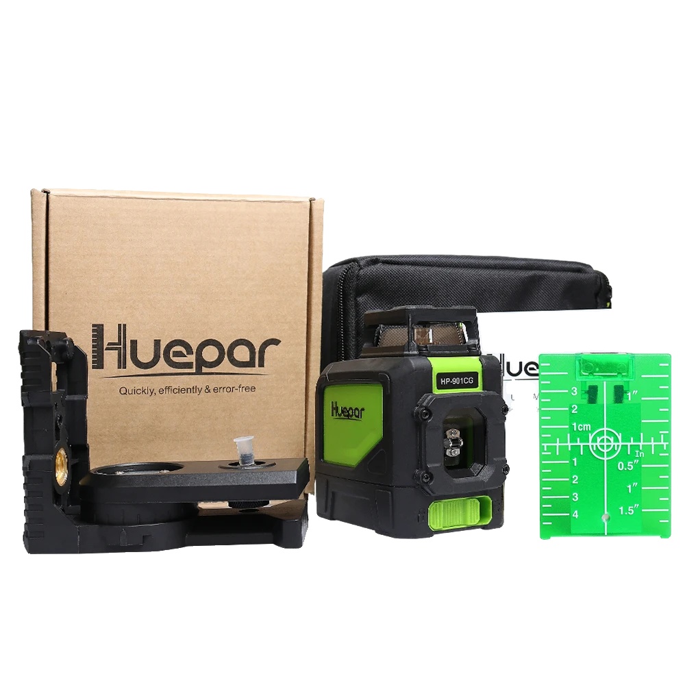 Huepar zelena žarka laserska raven, 360-stopinjska pokritost, ±3mm natančnost, zelena žarka 901CG