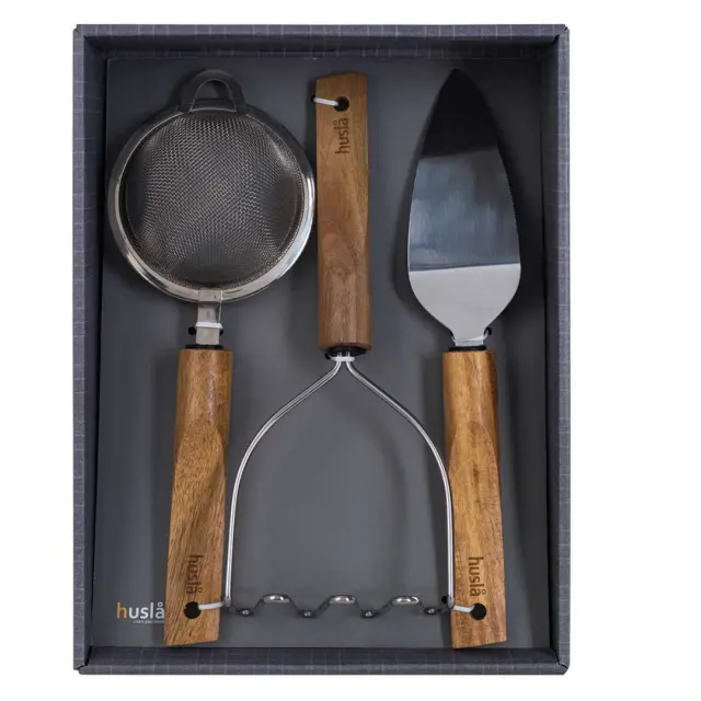 Naš komplet Sestavili smo ga tako, da so najbolj uporabni kuhinjski pripomočki vedno pri roki. Poleg tega je zaradi edinstvenega akacijevega lesa v kombinaciji s sijočim nerjavečim jeklom set ne samo edinstvenega videza, ampak tudi odličen spremljevalec pri vsakodnevnem kuhanju.