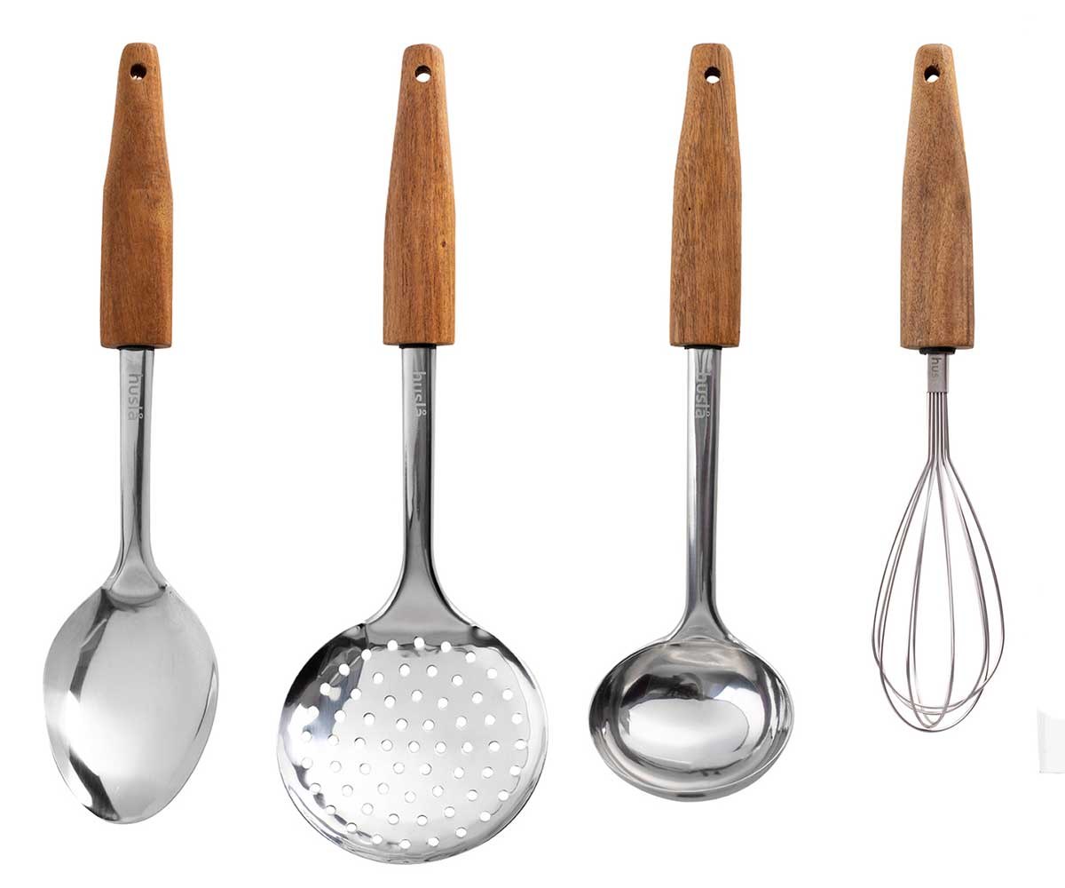 Naš komplet Sestavili smo ga tako, da so najbolj uporabni kuhinjski pripomočki vedno pri roki. Poleg tega je zaradi edinstvenega akacijevega lesa v kombinaciji s sijočim nerjavečim jeklom set ne samo edinstvenega videza, ampak tudi odličen spremljevalec pri vsakodnevnem kuhanju.