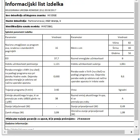 HISENSE HV673B61 vgradni pomivalni stroj