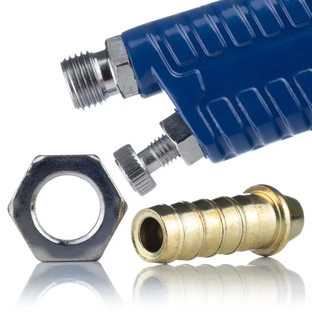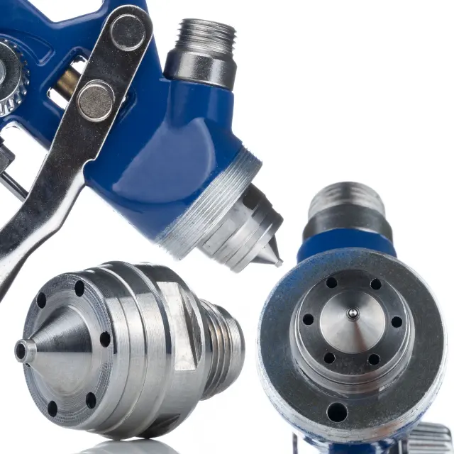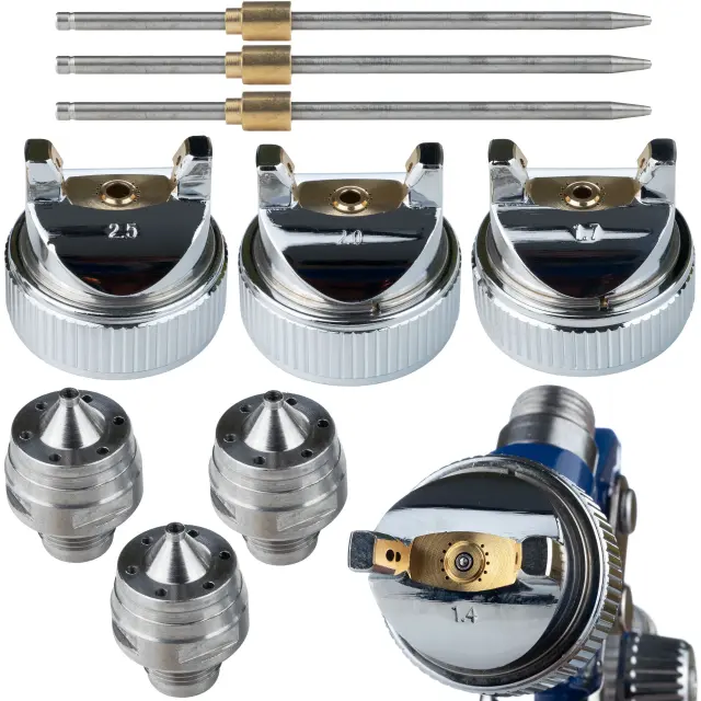 Rosfix HVLP Brizgalna Pištola – 4 Šobe 1,4–2,5 mm, 600 ml, 1/4'''' Priključek, 3–4 Bar | Medenina, Aluminij