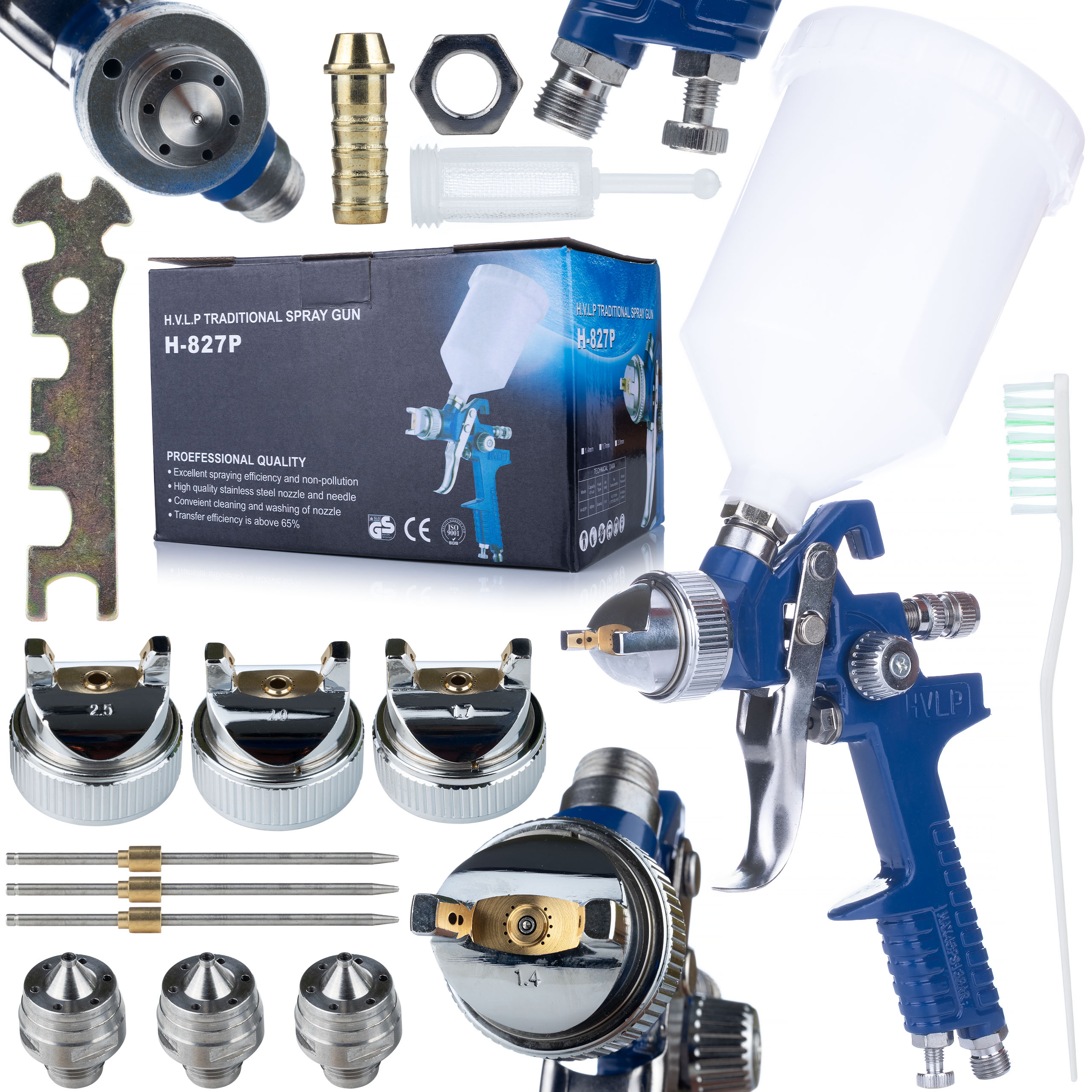 Rosfix HVLP Brizgalna Pištola – 4 Šobe 1,4–2,5 mm, 600 ml, 1/4'''' Priključek, 3–4 Bar | Medenina, Aluminij
