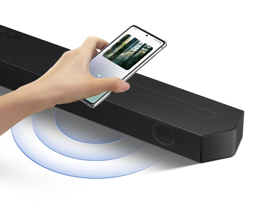 Za trenutke, ko želite uživati ob glasbi na drugi stopnji. Ko na svojem telefonu poslušate svoje najljubše skladbe, se s telefonom preprosto dotaknite zvočnika Soundbar. Soundbar prepozna napravo ter brezhibno poveže in predvaja skladbo, ki jo poslušate – z neverjetnim zvokom zvočnika Soundbar.