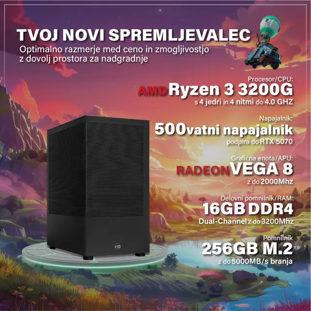 HYPER BYTE® Essential - Gaming PC / namizni računalnik - AMD Ryzen 3 3200G + Vega 8 - 16 GB DDR4 - 256 GB SSD - WLAN - Win11 Pro + 20€ Roblox