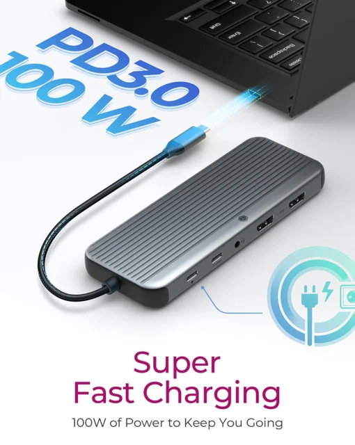 Icybox IB-DK4060-CPD priključna postaja s trojnim video izhodom