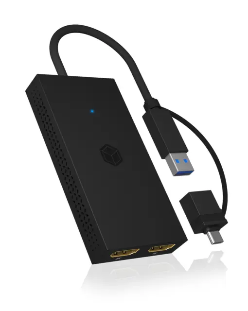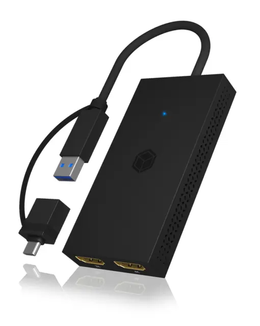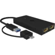 Prek gostiteljskega vmesnika USB 3.2 Gen 1 razdelilnik HDMI zrcali ali razširi gostiteljski zaslon na dva neodvisna monitorja.