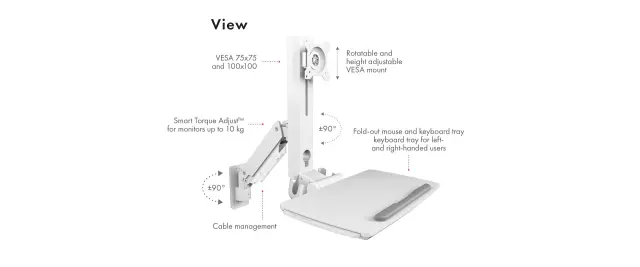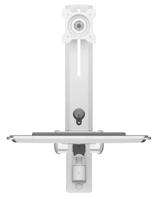 Delovna postaja IB-WS700-W Sit-Stand, nameščena na steno za prihranek prostora, zagotavlja odlično ergonomijo