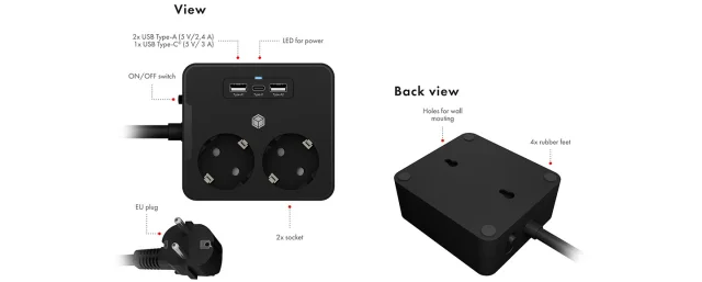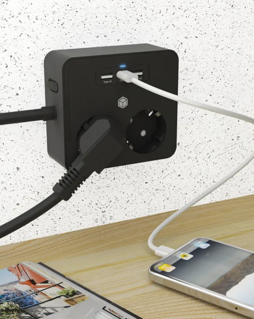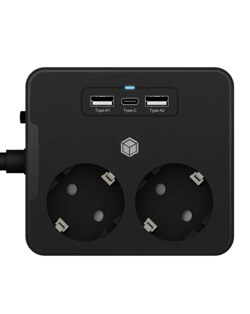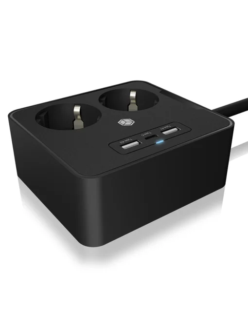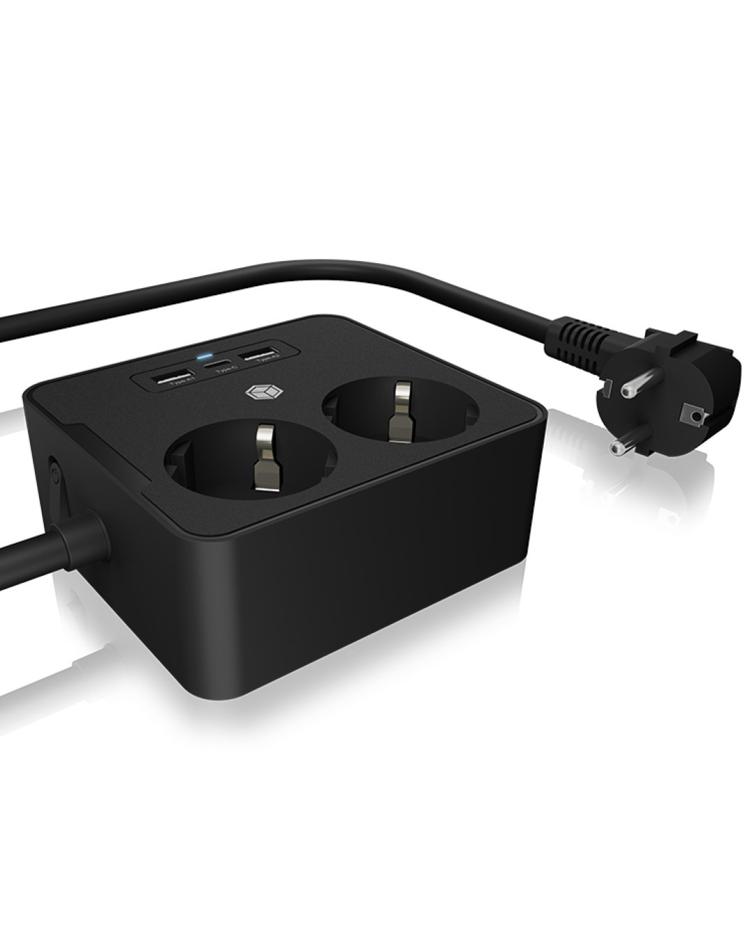 Icybox podaljšek 1,9m za dve 220V vtičnici in USB polnilnik 2xUSB-A in 1xUSB-C