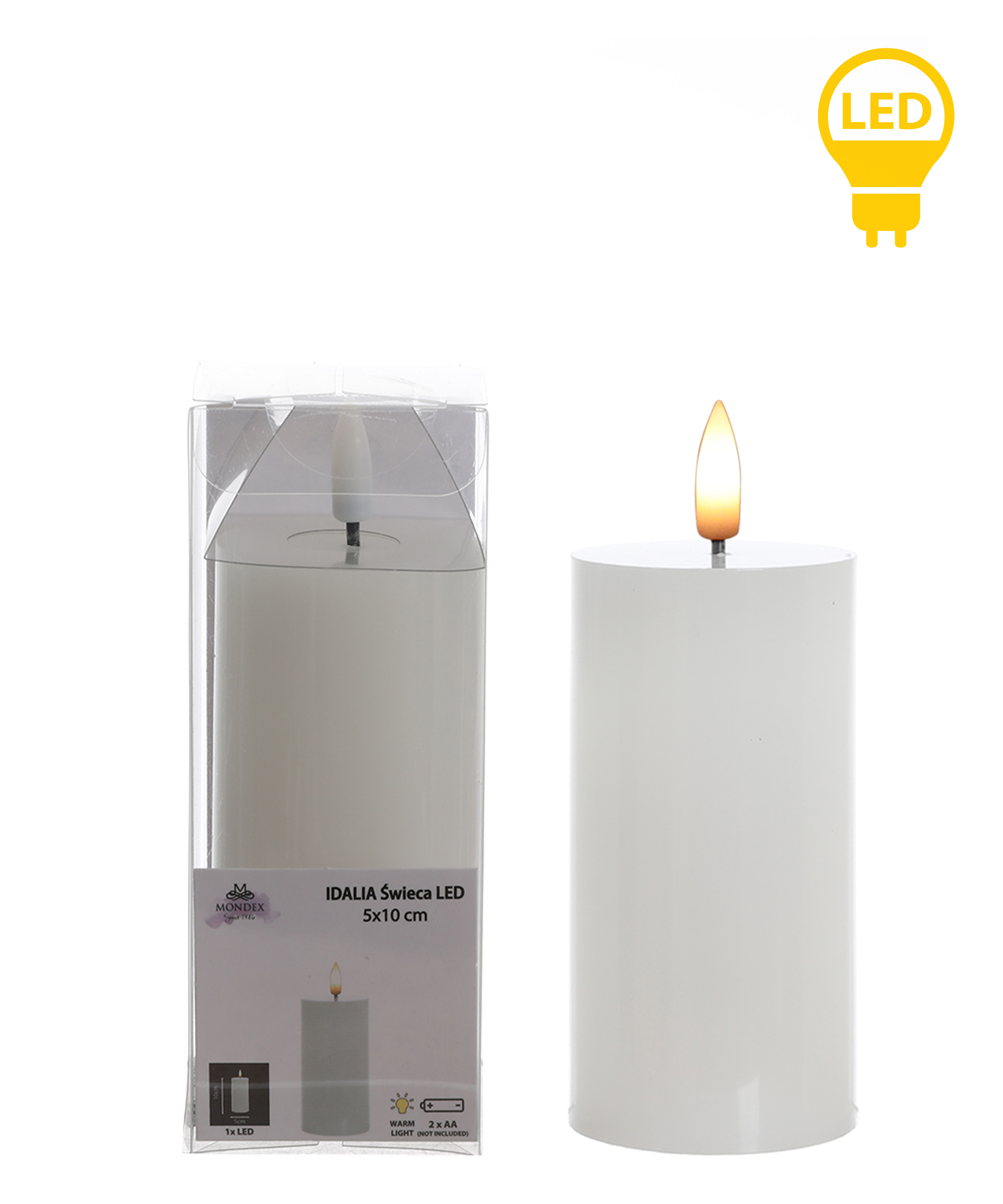 Sveča IDALIA LED je sodobna in elegantna rešitev, ki združuje lepoto tradicionalne sveče ter priročnost in varnost tehnologije LED. Tukaj so ključne prednosti izbire te sveče: Varnost: sveča IDALIA LED odpravlja nevarnost požara, ki se lahko pojavi pri tradicionalnih svečah. Zaradi odsotnosti odprtega plamena je idealna za uporabo v domovih z otroki in hišnimi ljubljenčki. dolgotrajna uporaba: v primerjavi s tradicionalnimi svečami ima sveča LED veliko daljši čas delovanja. Zahvaljujoč tehnologiji varčevanja z energijo baterija zdrži več ur prižiganja. večnamenska uporaba: sveča IDALIA je idealna za različne načine uporabe . od dekoracije doma do romantičnih večerij in praznične dekoracije. Njena nevtralna oblika se prilega vsakemu interierju. enostavna uporaba: sveča je enostavna za uporabo . preprosto vstavite baterije in pritisnite gumb ter uživajte v topli, prijetni svetlobi. Ni vam treba skrbeti za prižiganje ali ugašanje. realističen učinek plamena: sveča IDALIA posnema pravi plamen, kar vaši notranjosti doda toplino in prijetnost brez tveganj, povezanih s tradicionalnimi svečami. z izbiro sveče IDALIA LED vlagate v varno, dolgotrajno in okolju prijazno rešitev, ki bo odlično dopolnila vzdušje v vašem domu. Dimenzije podstavka: 5 cm Sveča brez knota: Svečnik: 10 cm Celotna velikost: 5xh13 cm