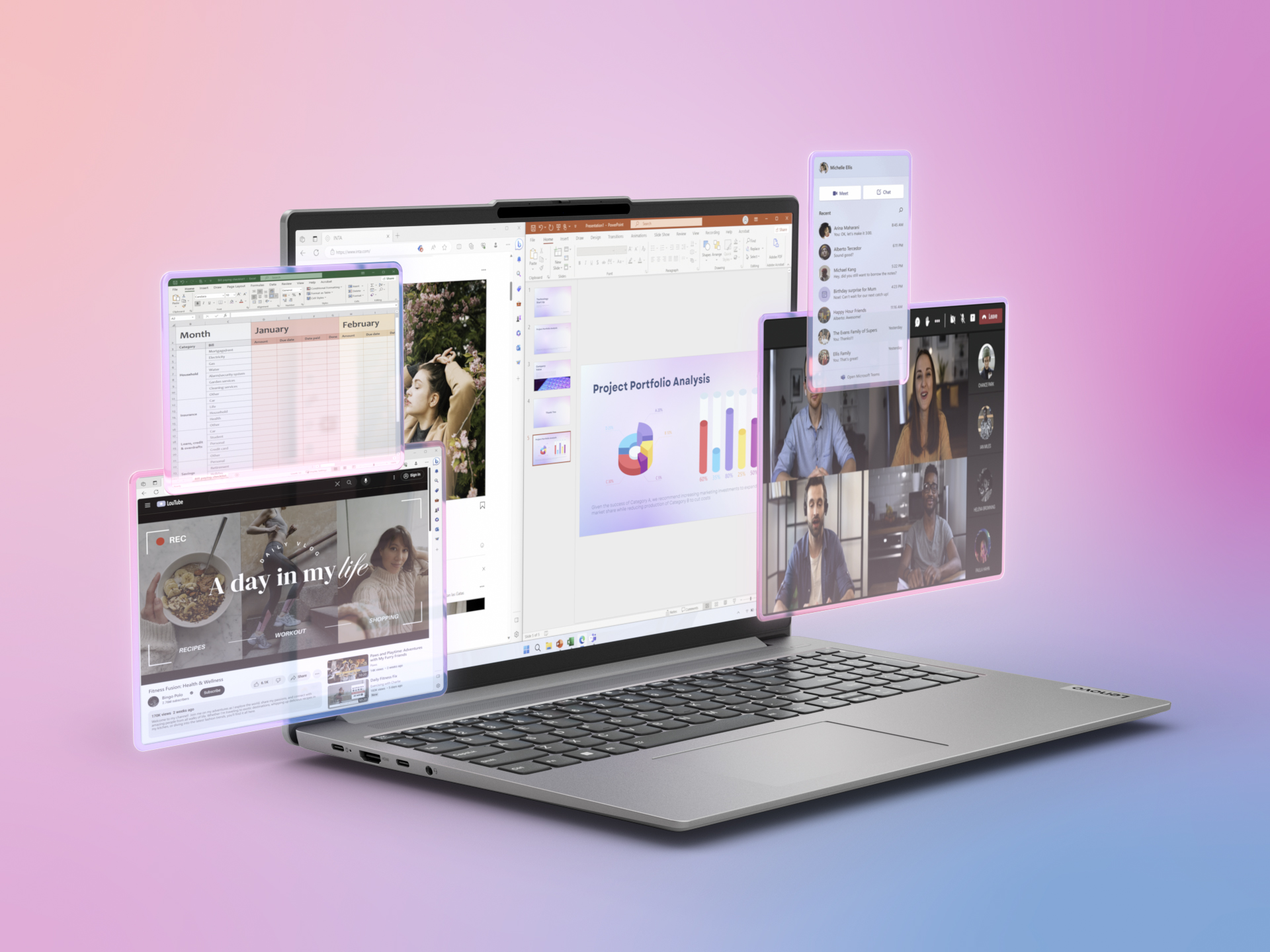 Izpolnjujte svoje roke in opravite svoje naloge, saj opravljanje več nalog hkrati ni bilo še nikoli lažje. Uživajte v hitrosti s tehnologijo hitrega polnjenja, ki zagotavlja 2 uri delovanja baterije v samo 15 minutah. Nikoli več ne skrbi zaradi praznjenja baterije. Ko se morate povezati, ne glede na to, ali gre za takojšnje polnjenje ali brezhibne prenose datotek, to stori namesto vas prenosni računalnik IdeaPad Slim 5 Gen 9 16" AMD. Poleg tega se lahko takoj prijavite z izbirnim dotikom prsta ali nasmehom na vašem obraz — medtem ko senzor kamere ToF prebudi sistem samo z vašo prisotnostjo.