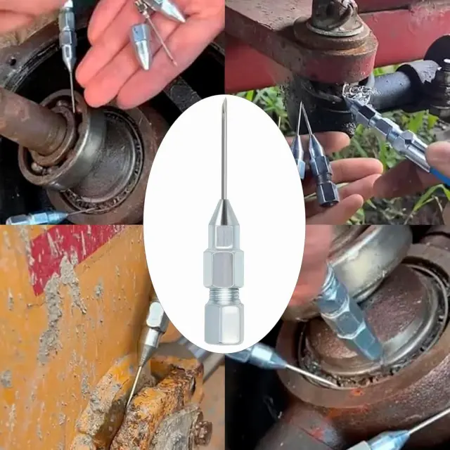 Igelni nastavek za mazalno pištolo GREASRA je zasnovan za natančnost, kar vam omogoča enostaven nanos masti v ozkih in težko dostopnih prostorih.