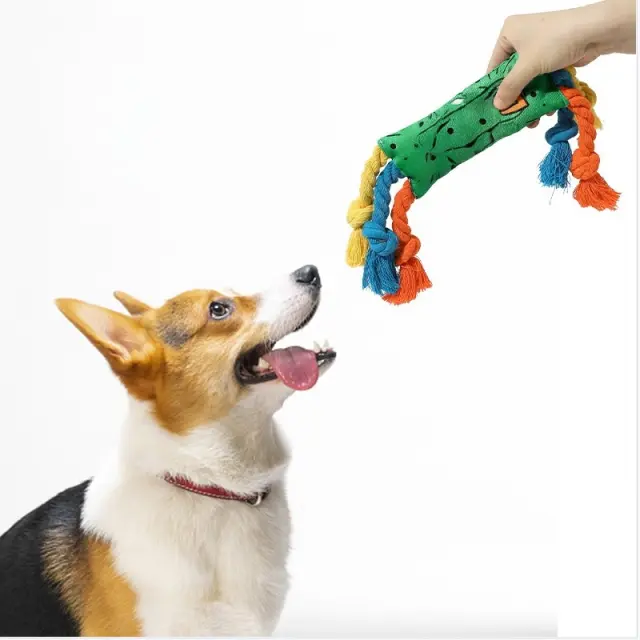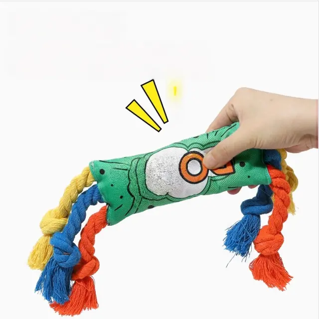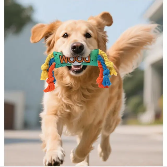 Interaktivna zabava pri igri: Ta igrača za hišne ljubljenčke z vozli iz vrvi je zasnovana za interaktivno igro in zagotavlja ure zabave za vašega kosmatega prijatelja. Zasnova vozlane vrvi spodbuja vlečenje in prinašanje, spodbuja vadbo in povezovanje med vami in vašim hišnim ljubljenčkom. Popolna je za pse vseh velikosti in pasem, ki se radi igrajo in ostanejo aktivni. Svetle barve in privlačna tekstura bodo vašega psa ohranjale zainteresiranega in zabavnega, zaradi česar je odličen dodatek k njegovi zbirki igrač. Ta igrača je primerna tudi za namene usposabljanja, saj pomaga okrepiti ukaze in zgraditi močnejši odnos z vašim hišnim ljubljenčkom.