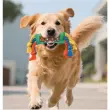 Nežno čiščenje zob: Poliestrski material vrvi nežno masira dlesni vašega psa in pomaga očistiti njegove zobe med žvečenjem. Vlakna vrvi delujejo kot naravna zobna ščetka, ki odstranjujejo zobne obloge in zobni kamen ter spodbujajo boljšo ustno higieno. Redno žvečenje te igrače lahko pomaga preprečiti zobne težave, kot so bolezni dlesni in zobna gniloba, ter ohranja zobe vašega psa zdrave in močne. Je varen in učinkovit način za ohranjanje ustnega zdravja vašega hišnega ljubljenčka, hkrati pa mu zagotavlja zabavno in privlačno igračo. Mehka tekstura je nežna do njihovih dlesni, zaradi česar je primerna za mladičke in starejše pse.