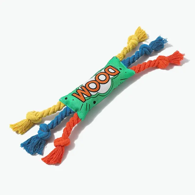 Mehka in odporna na ugrize: Ta igrača za hišne ljubljenčke z vozli iz vrvi je izdelana iz visokokakovostnega poliestra in je mehka na pasjem gobčku, hkrati pa je odporna na ugrize. Tesno tkana konstrukcija vrvi lahko prenese zmerno žvečenje in zagotavlja zadovoljiv izhod za naravne žvečilne nagone vašega psa. Mehka tekstura je nežna do njihovih dlesni in zob, zaradi česar je varna in udobna igrača za daljšo igro. Čeprav ni neuničljiva, je ta igrača zasnovana tako, da prenese redno uporabo in zagotavlja dolgotrajno uživanje vašemu hišnemu ljubljenčku. Med igro vedno nadzorujte svojega psa in zamenjajte igračo, če postane preveč obrabljena ali poškodovana.
