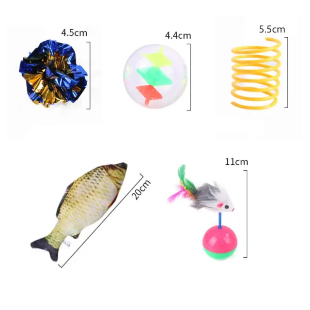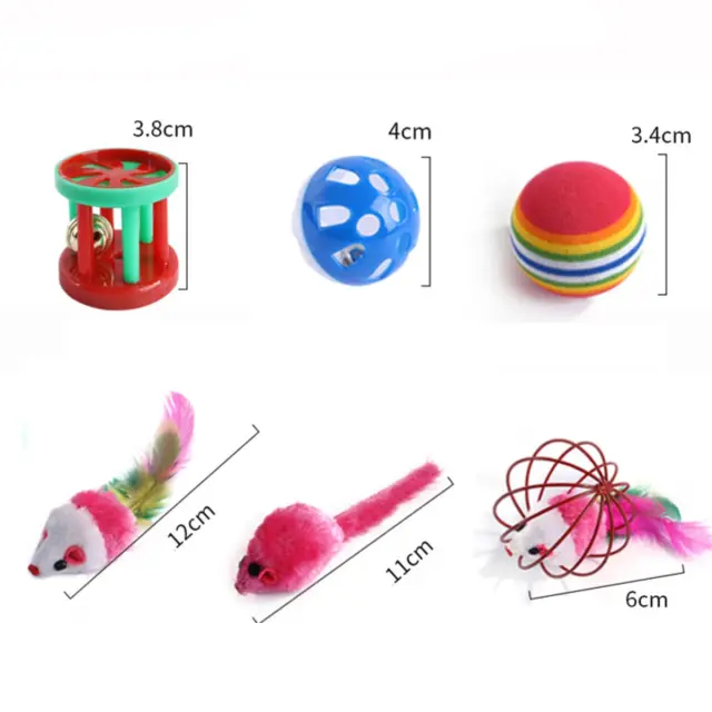Olajšanje stresa: Ko mačka išče družbo ali umiritev, predstavlja ta komplet pomirjujočo izbiro aktivnosti. Peresne igrače in nerjaveči zvonček ustvarjajo nežno gibanje in prijeten zvočni učinek, medtem ko kotalna miška in žogica z zvončkom ponujata raznolike možnosti interakcije. Uporaba teh kosov pomaga zmanjšati dolgčas in tesnobo pri muckih in odraslih mačkah skozi pozitivno igro in pozornost lastnika, kar prispeva k večjemu čustvenemu ravnovesju brez osamljenosti.