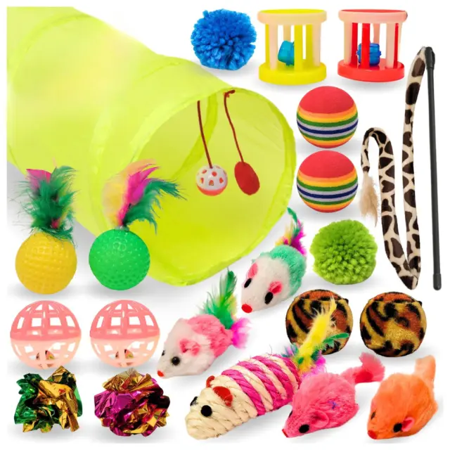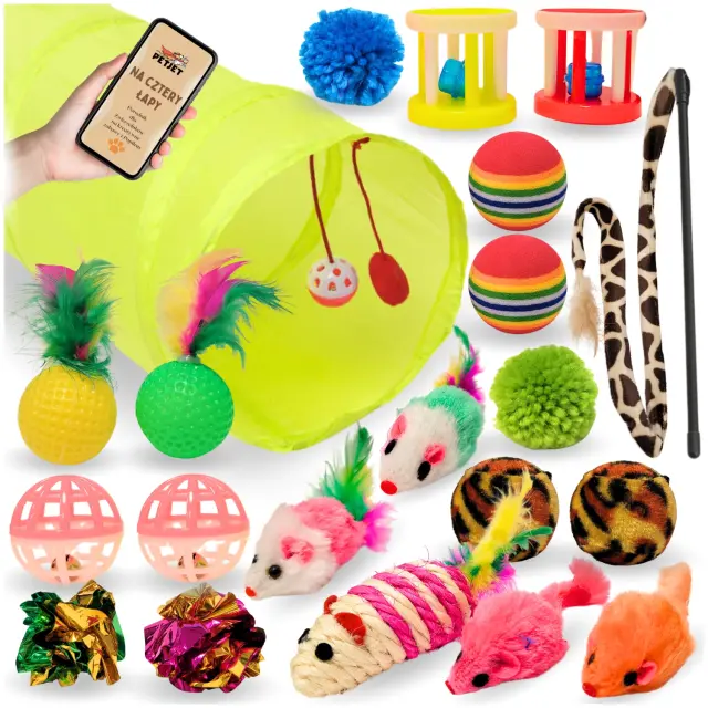 Igrače za mačke interaktivna tunelska postelja ribiška palica 21 kosov velik komplet PetJet