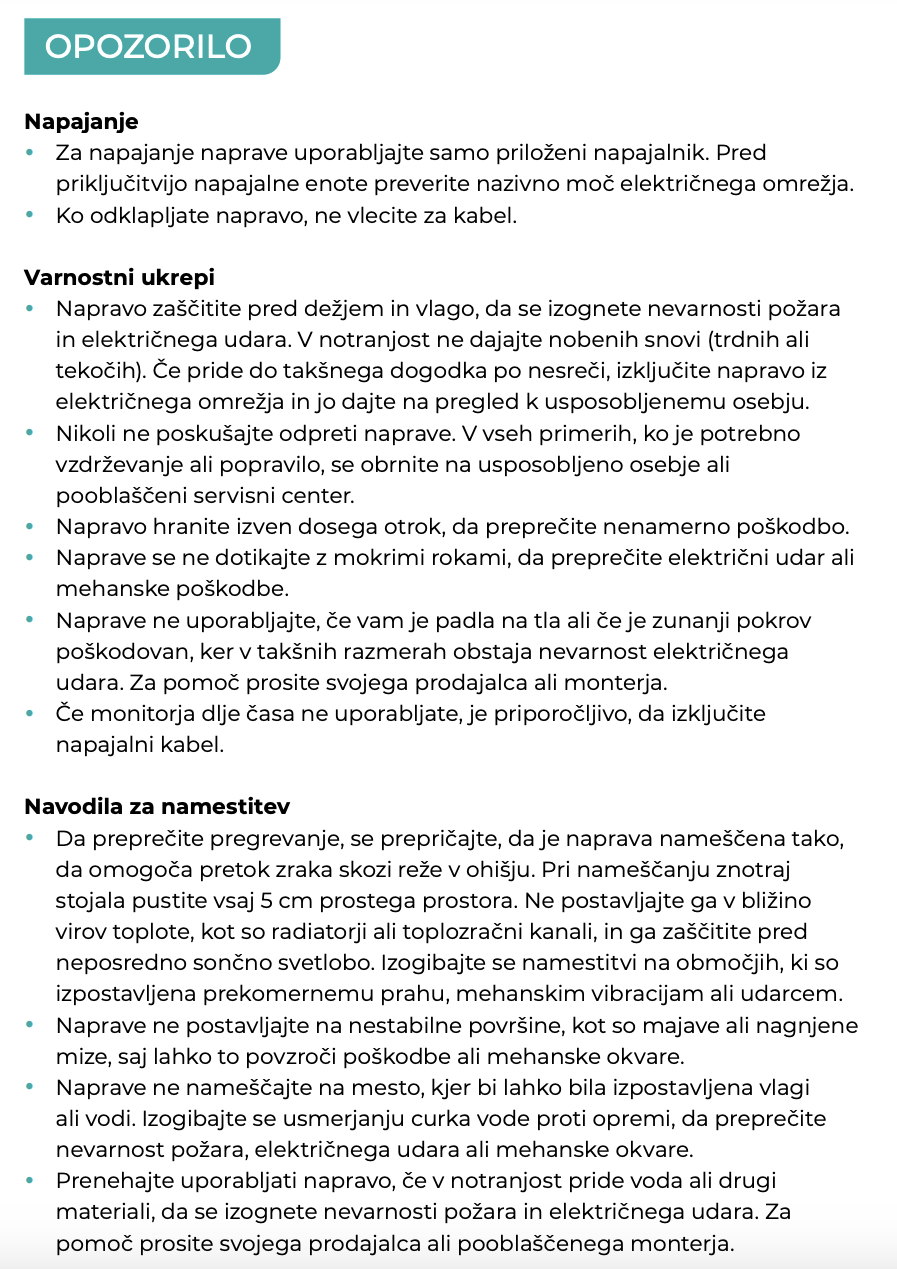 Slike o varnosti izdelka vsebujejo opozorila na embalaži izdelka in lahko vključujejo ključne varnostne informacije, povezane z določenim izdelkom.