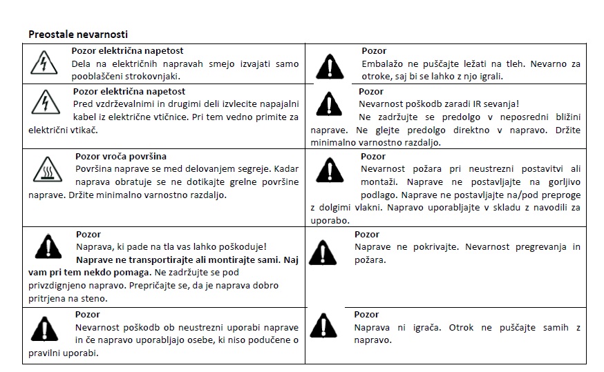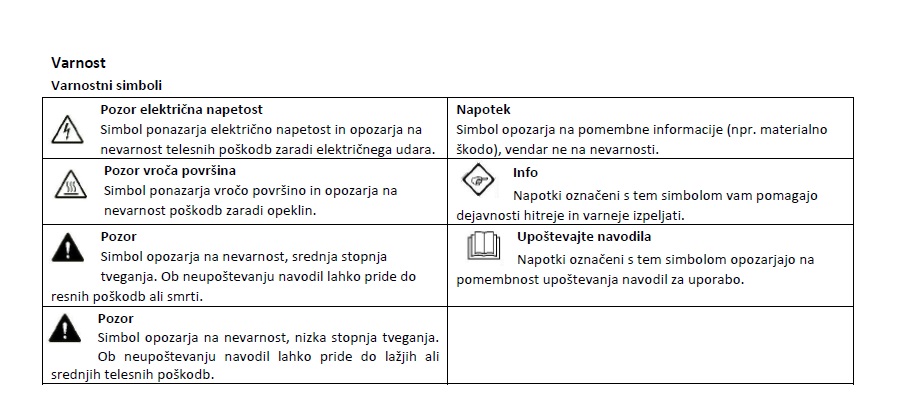 Slike o varnosti izdelka vsebujejo opozorila na embalaži izdelka in lahko vključujejo ključne varnostne informacije, povezane z določenim izdelkom.