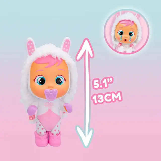 omogočanje otrokom, da se naučijo prepoznavati in obvladovati čustva ter tako razvijajo svojo empatijo.. Lutka v notranjosti je pomanjšana različica slavnih lutk Cry Babies z enakimi ljubkimi, jokajočimi značilnostmi.. Zaradi kompaktne velikosti lutke jo otroci zlahka prenašajo.. Spremljajo ga majhni dodatki, kot sta lutka ali lutka, ki še povečajo domišljijsko igro..