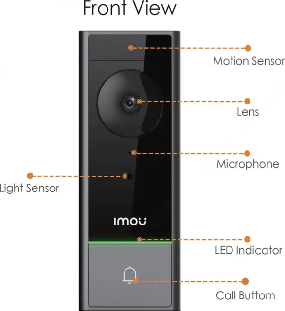Objektiv s 5 MP (QHD) ponuja odlično kakovost slike za pozdravljanje obiskovalcev in nadzor pred hišo, tudi ponoči zaradi načina nočnega vida. Uporabljena tehnika stiskanja slike H.265 zagotavlja, da visokokakovostni posnetki in prenosi zasedajo razmeroma malo prostora in zato zahtevajo manjšo pasovno širino. Na ta način je mogoče optimalno izkoristiti razpoložljivi prostor za shranjevanje in pasovno širino. Video zvonec Imou DB60 uporablja 2,4 GHz WiFi in ponuja zelo stabilno povezavo v kombinaciji z napravo Chime, ki je tudi podaljšek WiFi.