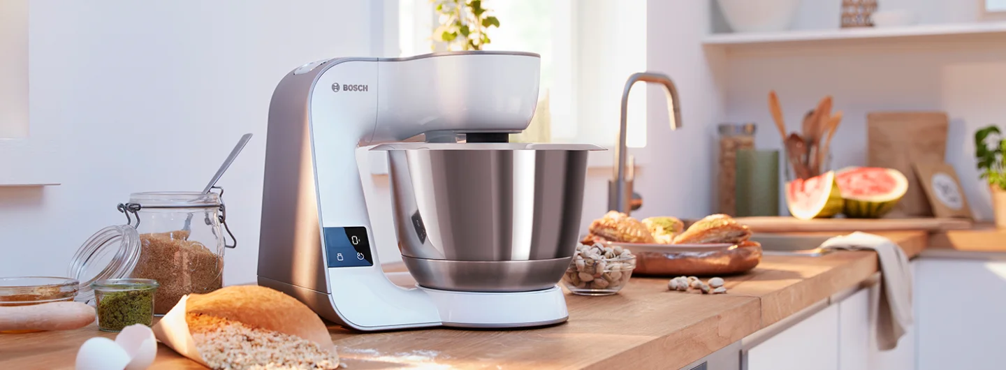 Čaka vas sproščena peka! Funkcija EasyArm Lift vam omogoča, da z mešalno roko enostavno upravljate že s pritiskom gumba, pripomočke za mešanje pa ustavite na zadnji strani posode, tako da lahko sestavine preprosto dodajate s sprednje strani.