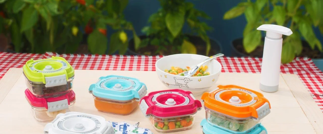 Čas, ko otrok počiva oz. ga čuva nekdo drug izkoristite kakovostno. Vzemite si čas zase in naredite nekaj, kar vam bo povrnilo energijo. En dan v tednu pa izkoristite za pripravo obrokov za malčka. Shranjevanje v vakuumu vam omogoča pripravo obrokov v naprej, brez skrbi, da bi živila izgubila hranilne vrednosti. Če skuhane kašice in narezane zelenjavno-sadne prigrizke shranite v Statusove vakuumske posode za otroško hrano, na naraven način podaljšate obstojnost živil in se rešite skrbi za cel teden. Ko nastopi čas za naslednji obrok, danes ali čez štiri dni, posodico le pogrejete v vroči vodi ali mikrovalovni pečici in lačnemu otroku ponudite prigrizek doma ali na sprehodu. [caption id="attachment_4322" align="aligncenter" width="768"]
