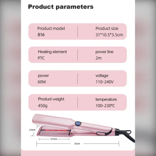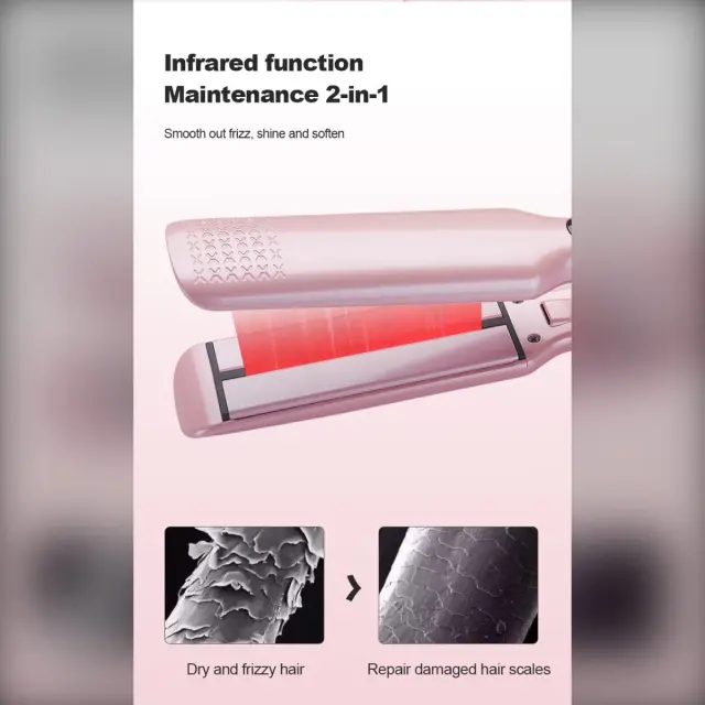 Zdrava tehnologija za lase: Izkusite bolj zdravo oblikovanje las z našo infrardečo tehnologijo. Infrardeča toplota tega ravnalnika enakomerno prodira v lasno vlakno, zmanjšuje poškodbe zaradi vročine in zadržuje vlago. Rezultat so bolj gladki, sijoči in bolj zdravi lasje, ki zmanjšujejo naelektrenost in lomljenje. Idealen za vse tipe las, od tankih do gostih, infrardeča tehnologija zagotavlja, da vaši lasje ohranjajo svojo naravno vitalnost, medtem ko dosežete želeni eleganten in raven videz, ne glede na to, ali se pripravljate na poseben dogodek ali si urejate lase za vsakdanjo eleganco.