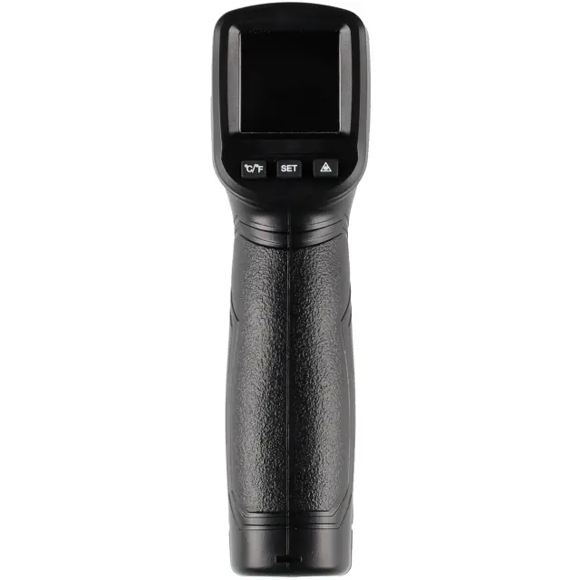 Osvetljen LCD-zaslon. Emisivnost 0,1–1,0. Uporablja se lahko tako v Celziju kot Fahrenheitu.