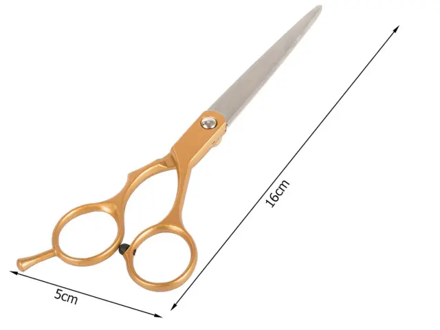 Zlate barve škarje dodajo pridih elegance in stilu, kar bo zagotovo pritegnilo pozornost vaših strank. Poleg tega so škarje tudi odporne na korozijo, kar pomeni, da bodo ostale sijoče in brez rje tudi ob redni uporabi.