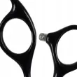 S svojo ergonomsko obliko in lahkim dizajnom te škarje zmanjšujejo obremenitev rok in zapestij med daljšim striženjem, kar povečuje udobje in učinkovitost pri delu. Črna mat površina dodaja pridih sofisticiranosti in elegance, zaradi česar so te škarje popolna izbira za vsakega stilista, ki si želi združiti funkcionalnost in stil.
