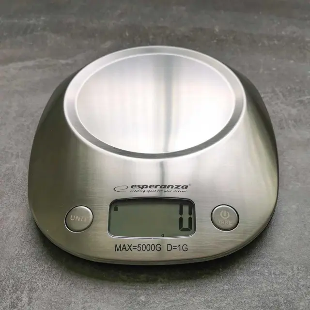 Kuhinjska tehtnica Esperanza je izjemno natančna, ko morate pripraviti jedi, juhe in peciva, ki zahtevajo strogo določena razmerja izdelkov. Razen funkcije tariranja je ta tehtnica specializirana za ločeno in natančno preverjanje količine vode in mleka. Zahvaljujoč površini iz nerjavečega jekla in posodi za tehtanje je izjemno vzdržljiv. Kuhinjska tehtnica Esperanza je obvezna naprava v vsaki kuhinji!• Največja kapaciteta: 5000 g