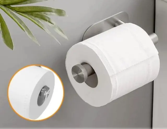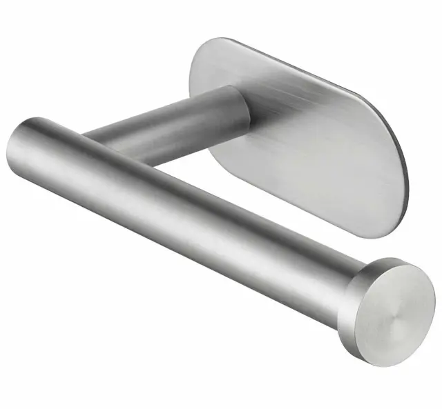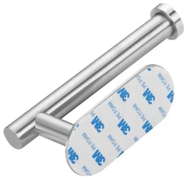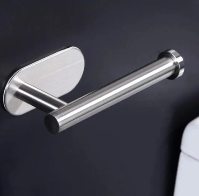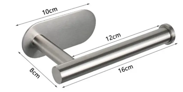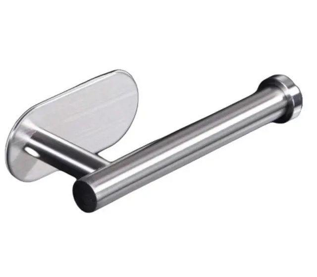 Srebrno samolepilno držalo za toaletni papir. Izdelan iz trdnega nerjavečega jekla z rahlo zaobljenimi oblikami. Priročna, neinvazivna namestitev z močnim dvostranskim trakom 3M.