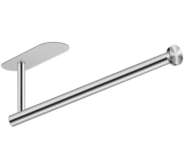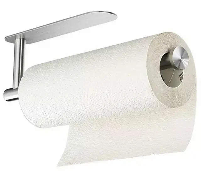 Priročno jekleno držalo za papirnate brisače. Zasnovan za montažo pod kuhinjsko omarico. Popoln za majhne kuhinje, saj prihrani dragocen prostor na pultu. Neinvazivna namestitev s samolepilnim trakom.