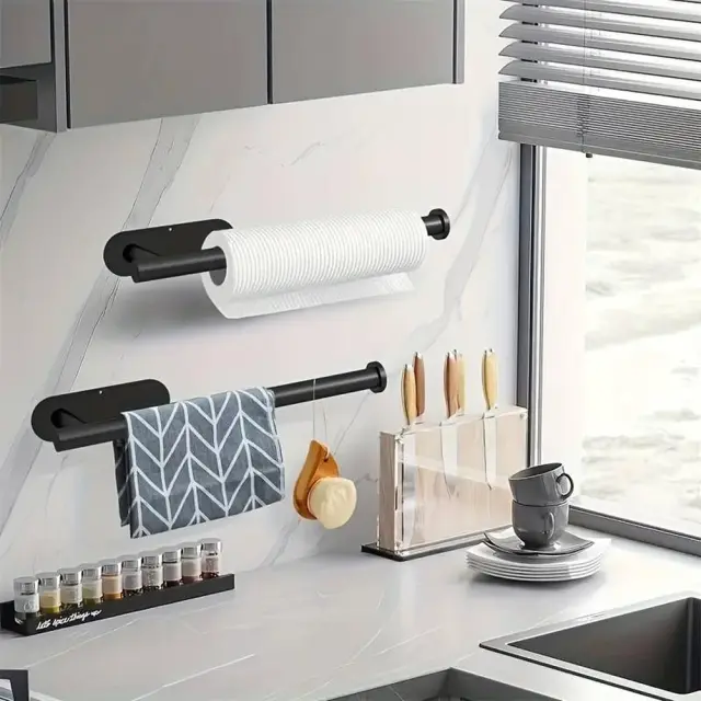 Udobno jekleno držalo za papirnate brisače. Zasnovan za montažo pod kuhinjsko omarico ali na steno. Popoln je za tesne kuhinje, saj prihrani dragocen prostor na pultu. Dva načina sestavljanja glede na vaše potrebe. Z uporabo lepilnega traku ali vijakov in moznikov, ki so priloženi v kompletu.