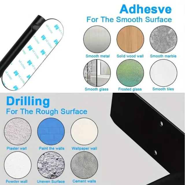 Dva načina montaže glede na vaše potrebe (s samolepilnim trakom ali vijaki in mozniki, ki so priloženi v kompletu).