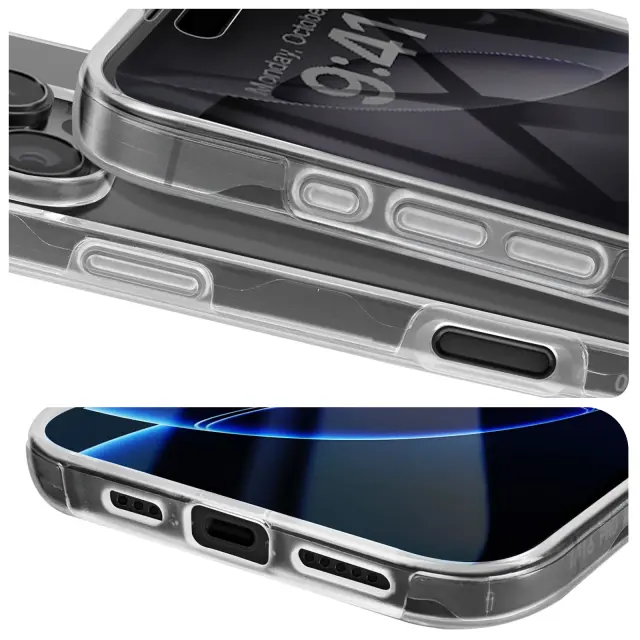 Integralno ohišje za iPhone 16 Pro Tactile z dvignjenim robom kamere, Prozorno