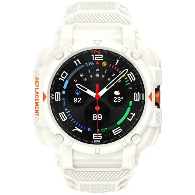 Varno in nastavljivo prileganje: Integrirana zasnova zagotavlja varno in udobno prileganje na zapestju. Pašček je zasnovan tako, da se popolnoma prilega vaši Samsung Watch Ultra 47 mm, kar zagotavlja stabilnost in preprečuje nenamerno snemanje. Nastavljiv je tudi za različne velikosti zapestja.