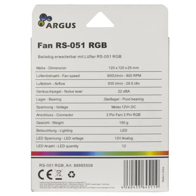 INTER-TECH ARGUS RS-051 RGB 120mm ventilator